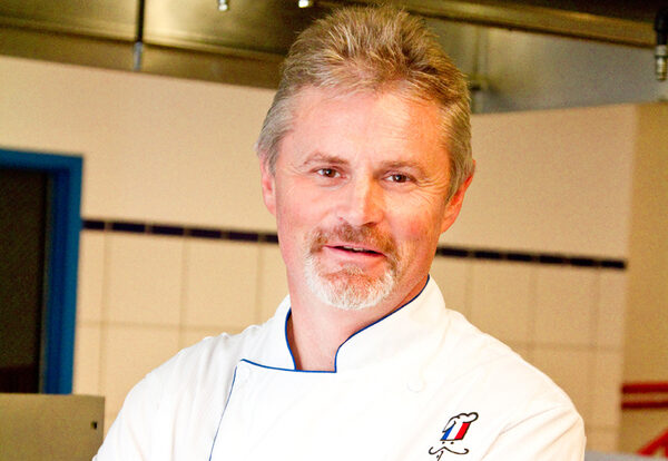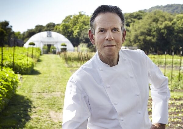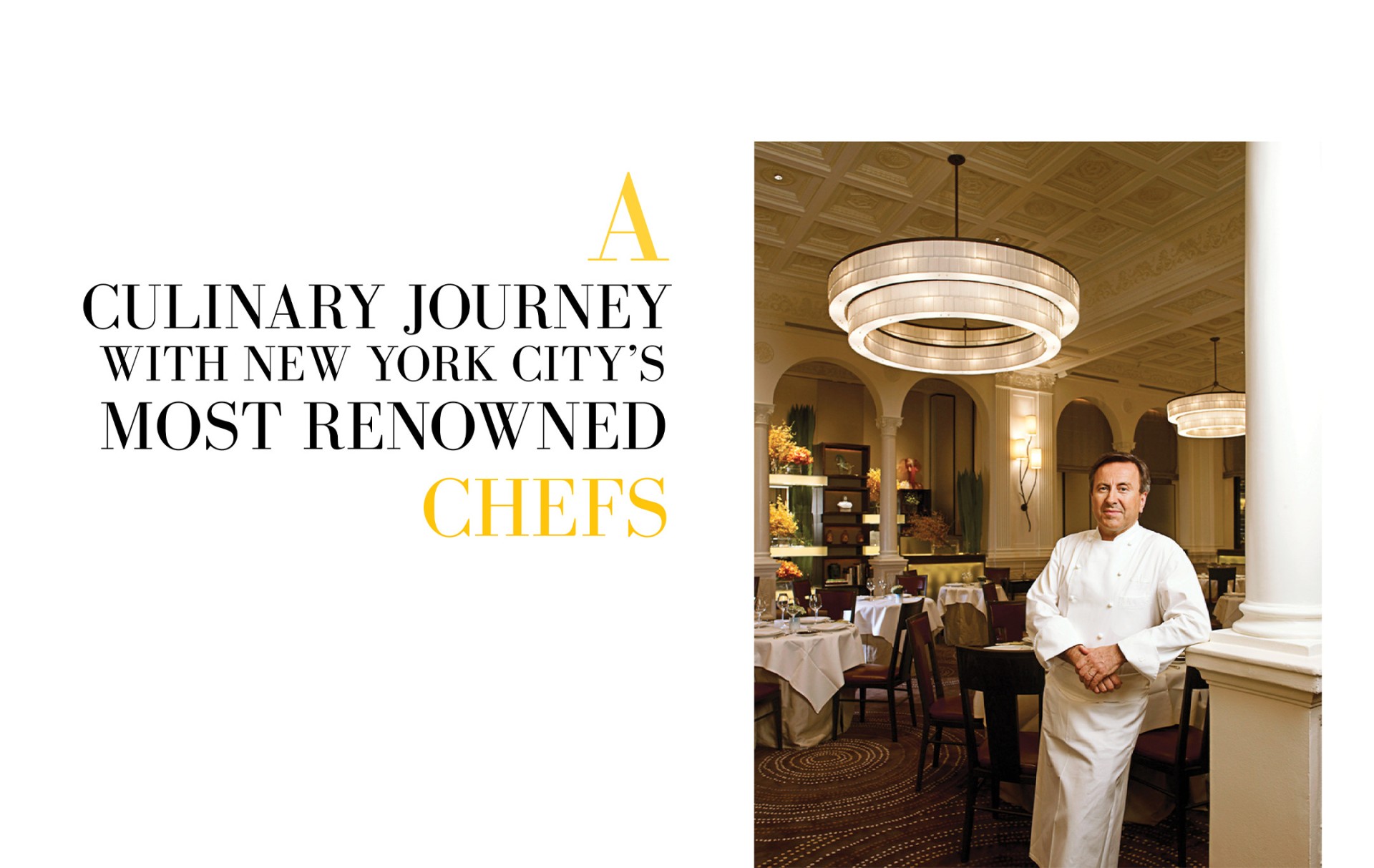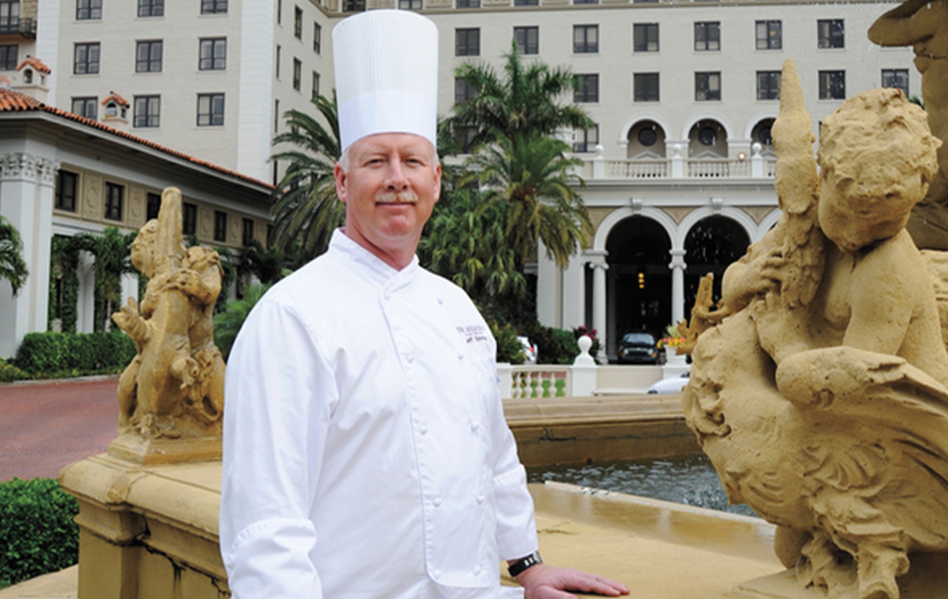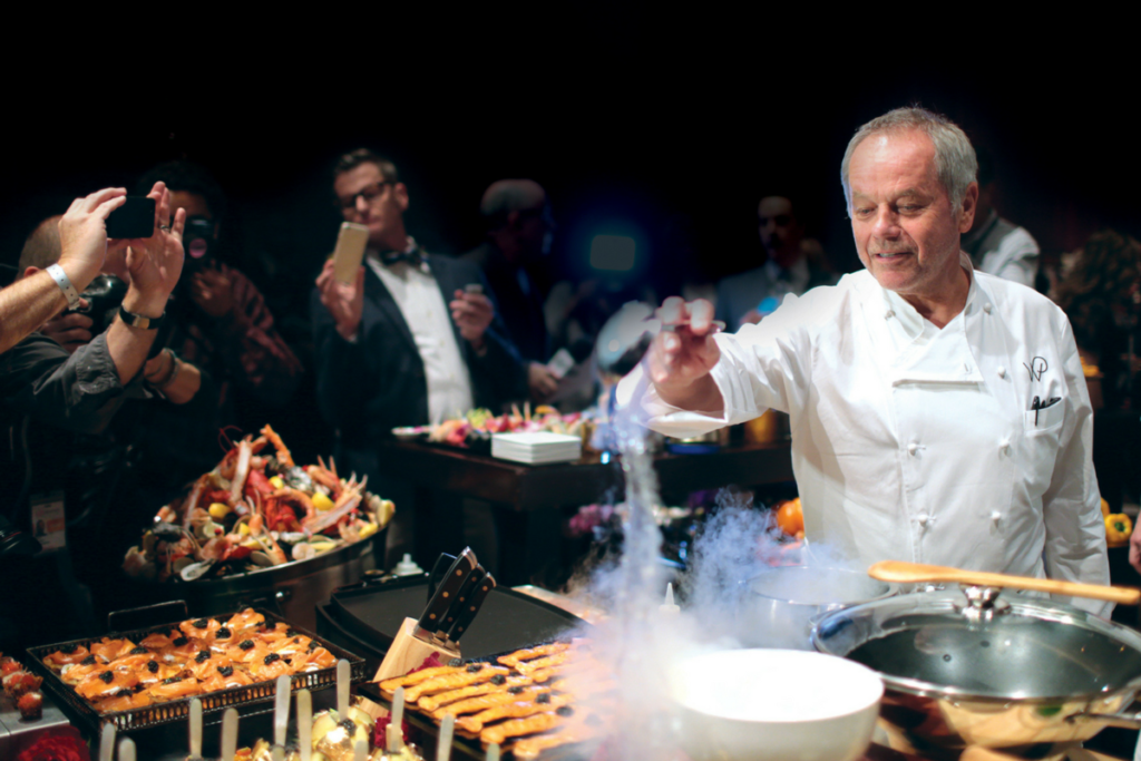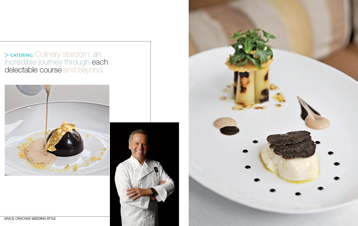 Imperial Chocolate: Warm chocolate; pudding cake with spiced ice cream and coffee sauce. Executive Pastry Chef Sherry Yard, Wolfgang Puck Fine Dining Group, Los Angeles, CA; Location: Hotel Bel-Air, Los Angeles, CA; Photography: Ron Manville; Right: Chef and Restaurateur Wolfgang Puck, Wolfgang Puck Fine Dining Group, Los Angeles, CA; Photography: Amanda Marsalis; Warm Po Farms leeks,