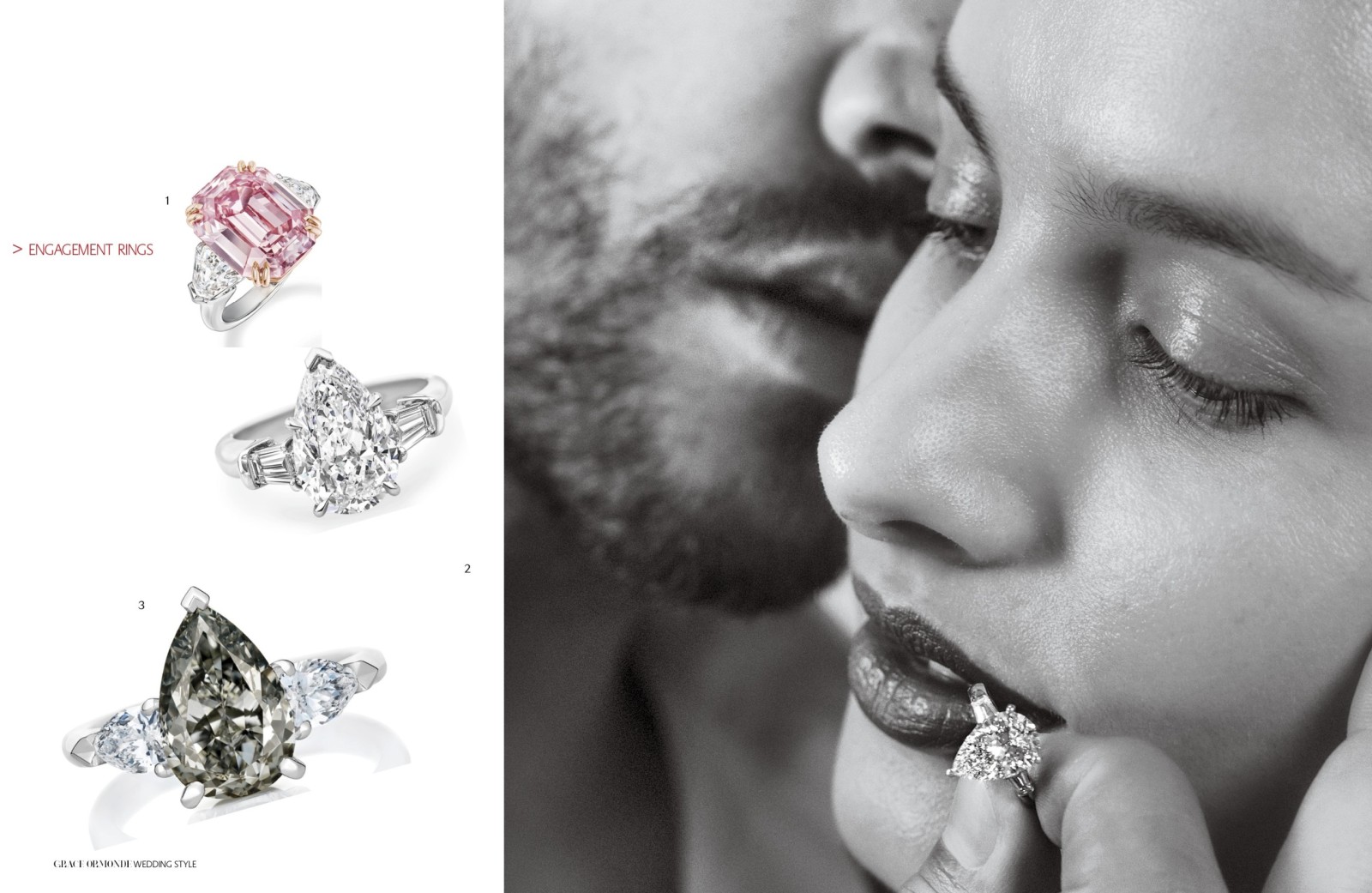As Seen in Grace Ormonde Wedding Style Photography by: Kellie Walsh, 4 Eyes PhotographyCartier Pear-Shaped Diamond Engagement Ring.1. Harry Winston Pink Emerald-Cut Engagement Ring. 2. Harry Winston Pear-Shaped Ring with Tapered Baguette Side Stones. 3. De BeersCOMPLETE GUIDE FOR CHOOSING THE PERFECT ENGAGEMENT RING IN 2023GraffThere are more engagement ring options now than ever. While shopping, whether online