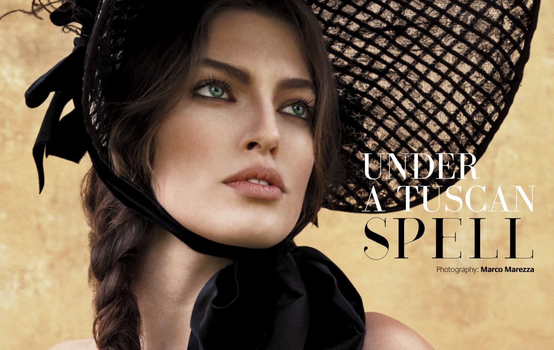 Photography: Marco Marezza; Production: L Group Productions; Fashion Director: Tracy Trouf; Stylist: Santa Versace Bevacqua at L&A Artist/L Group Productions; Assistant Stylist: Federica Salto; Hair: Stefano Gatti; Makeup: Sonia Veleno at L&A Artist/L Group Productions; Photography Assistant: Federico Laddaga; Location: Il Palagio, Tuscany, ItalyLocation: Il Palagio Tuscany, Italy; Gown: Victor Harper Couture; Crinoline: La Nuova Sartoria; Hat: Sands
