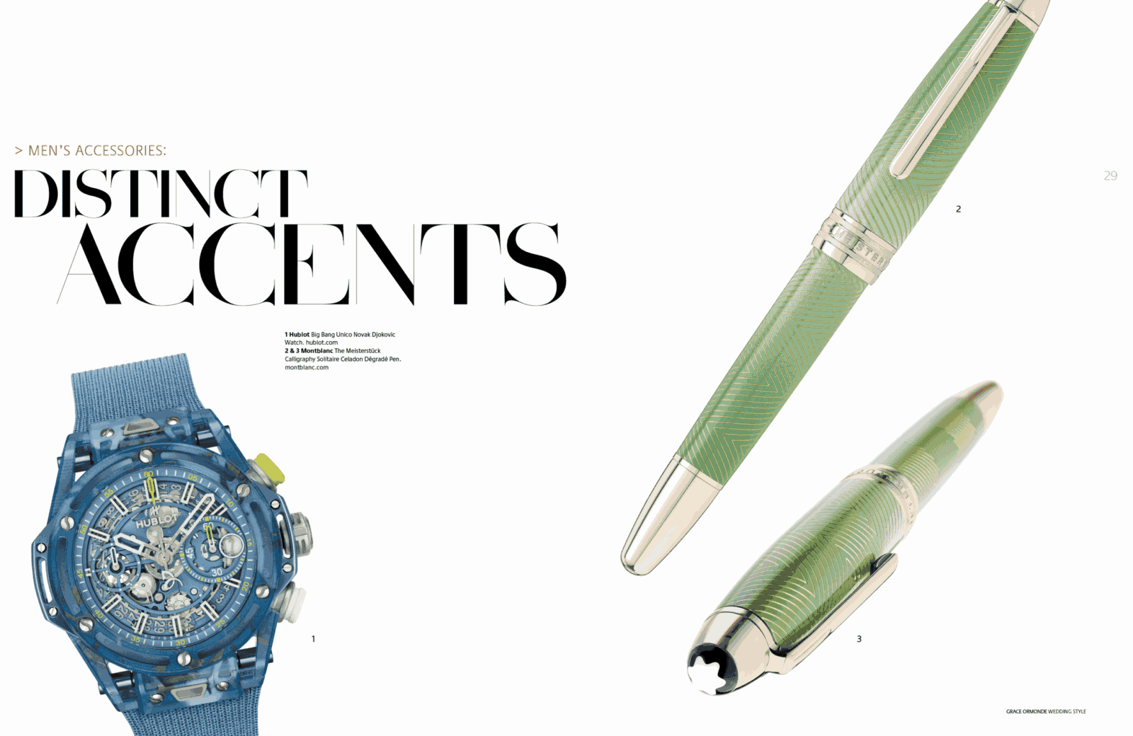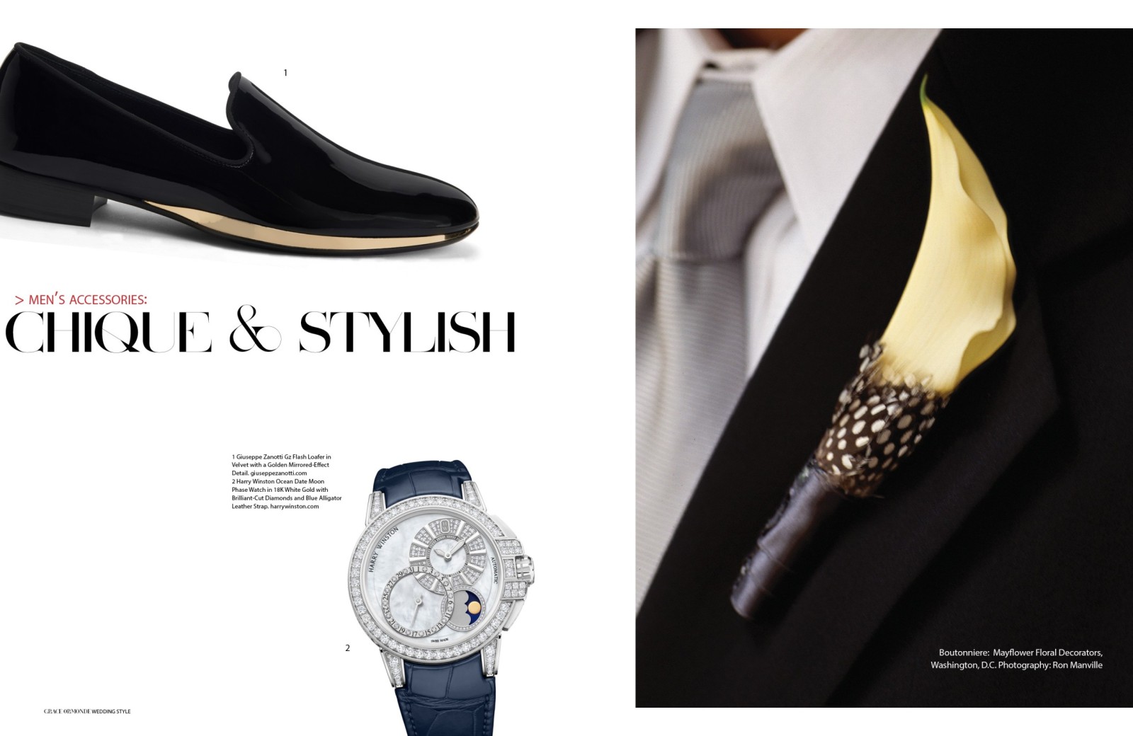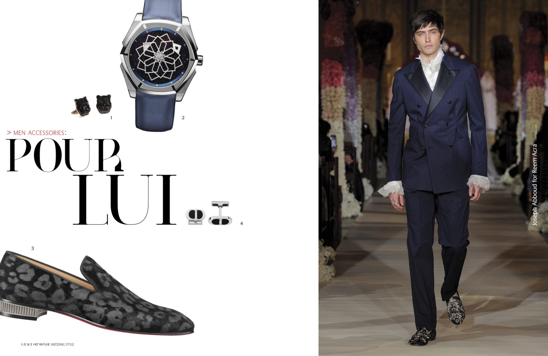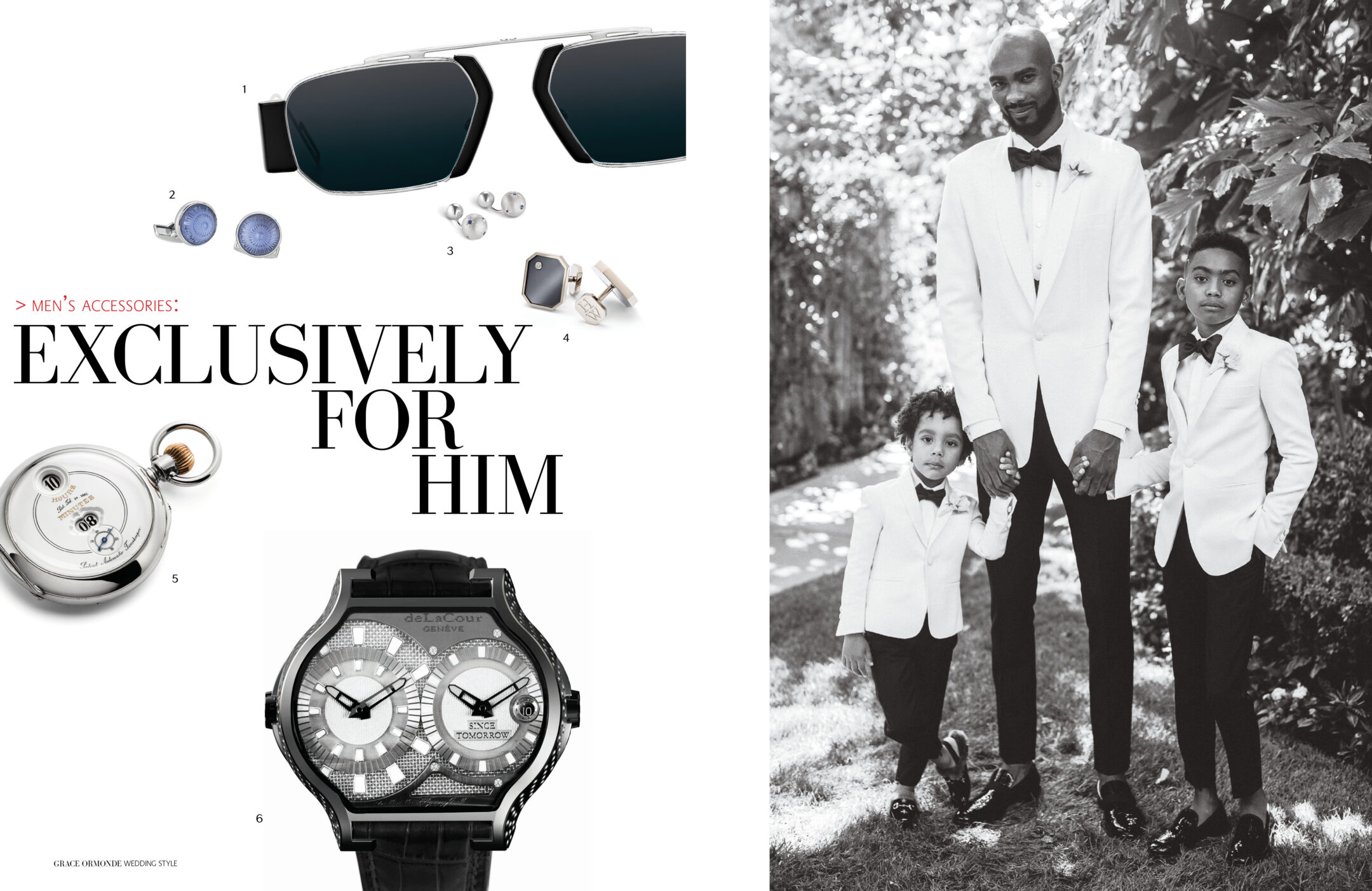 1 Piaget Polo Perpetual Calendar Obsidian Watch. 2 Seaman Schepps Cushion Cufflinks in Blue Topaz and Sapphire. 3 Ulysse Nardin Diver Watch. 4 Seaman Schepps Lapis Bar Cufflinks. 5 Jimmy Choo Foxley Loafer Black with Tassel.MEN’S ACCESSORIES: DISTINCT ACCENTS FOR HIM1 Ulysse Nardin Diver Watch. 2 Brunello Cucinelli Calfskin Loafers. 3 Soul of Nomad Leather Golf Bag.