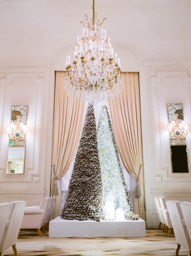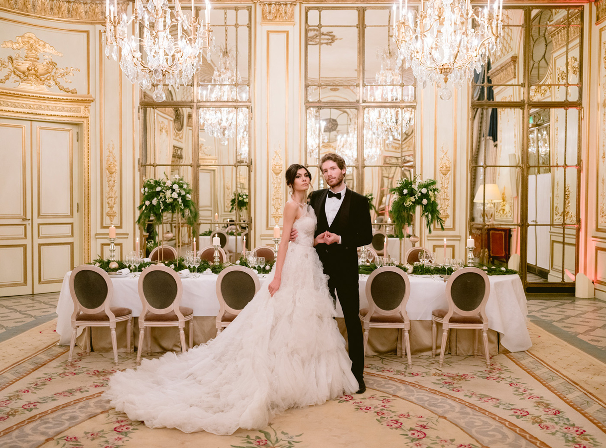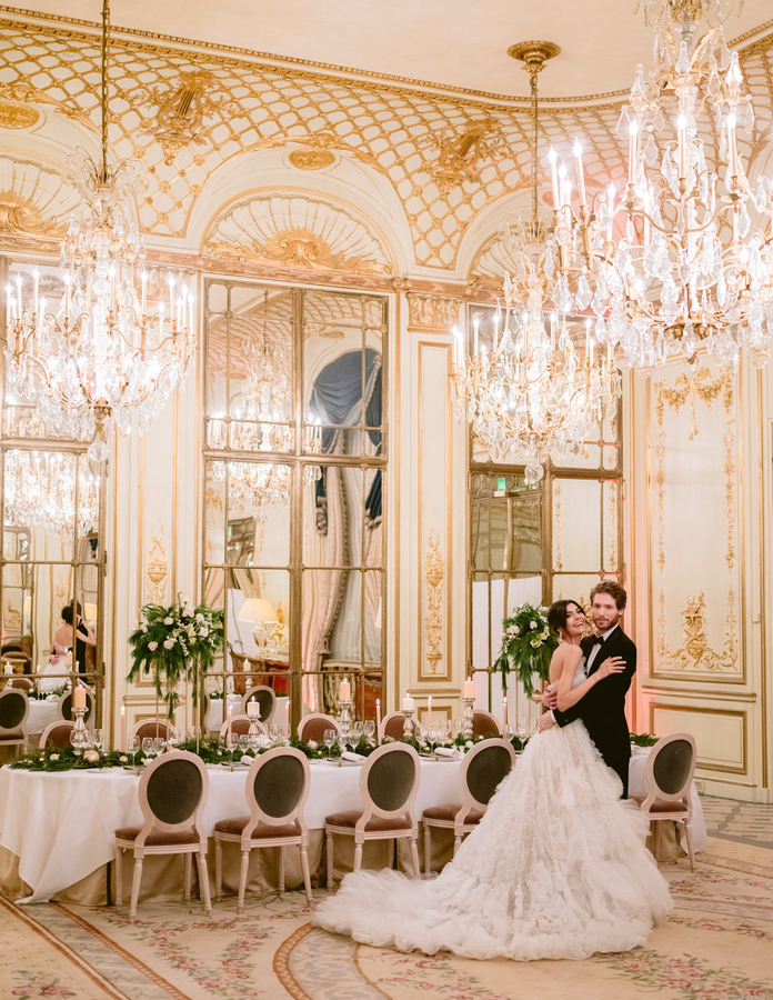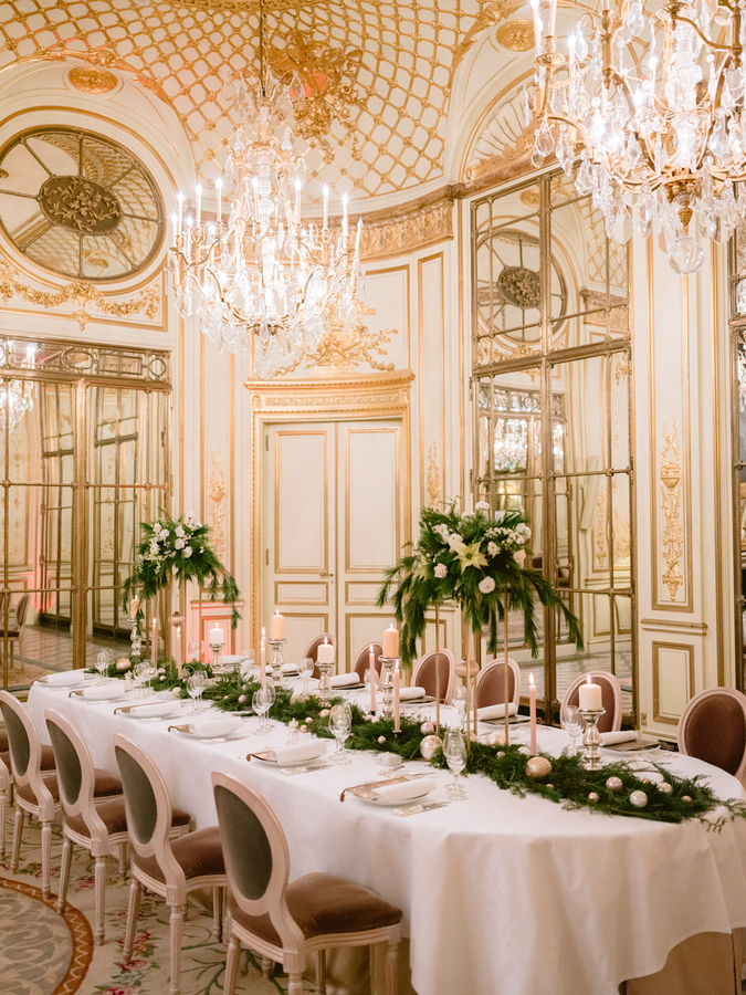 To finish off an incredible day of love, celebrations, and reveling in the romance of Paris, a wedding reception was organized at the Salon de Pompadour at Le Meurice. Tables were beautifully set with Christmas decorations, cocktails, and flowers, and the newlyweds were beyond thrilled to have enjoyed such an unforgettable Christmas wedding experience together.