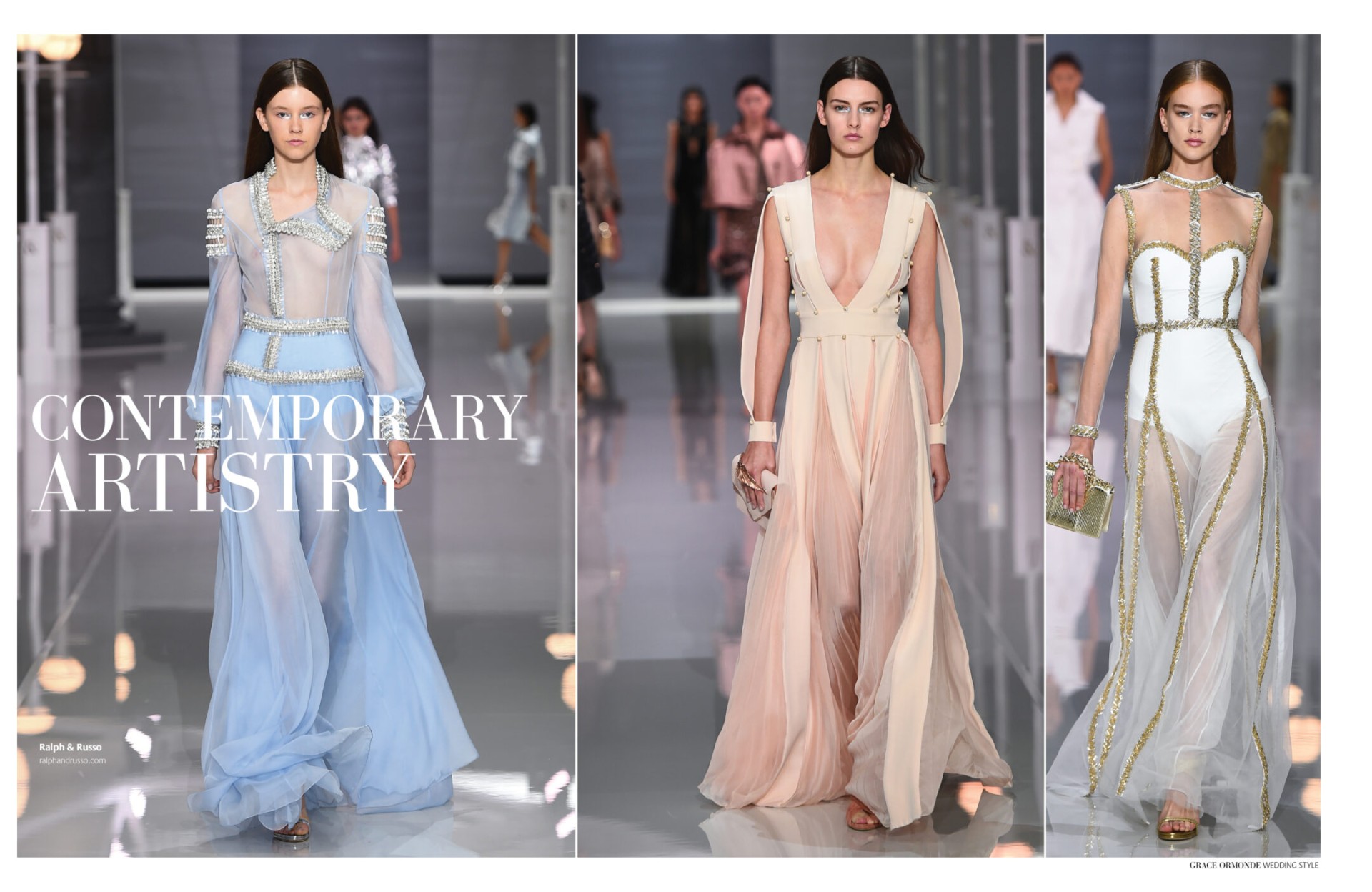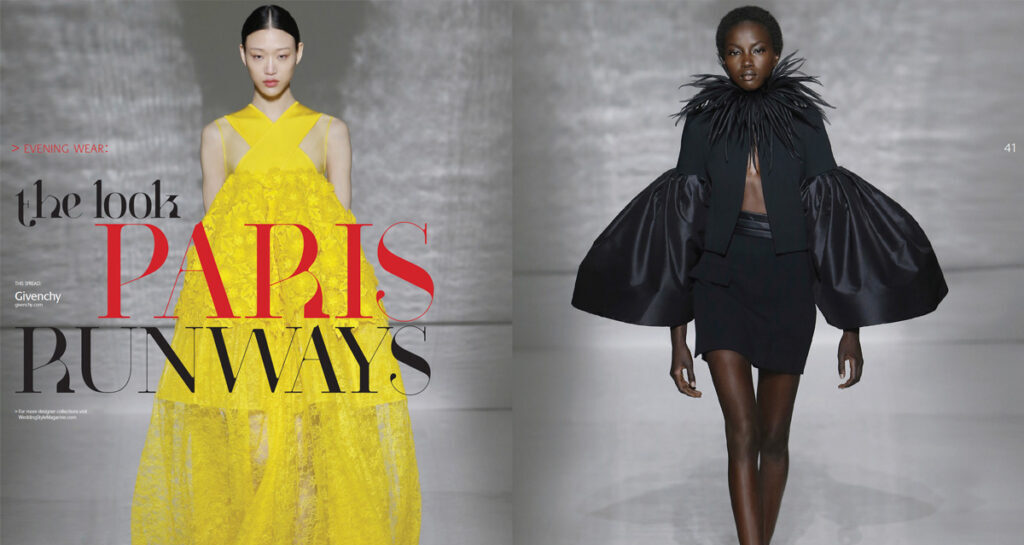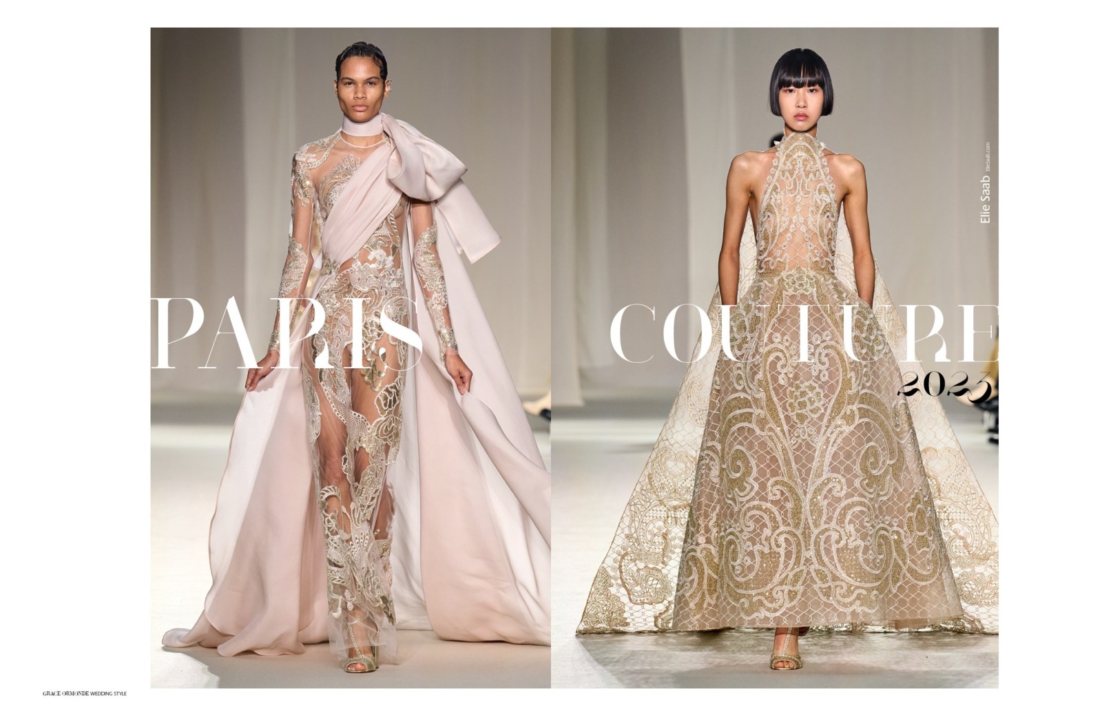 FALLING FOR NEUTRALS – FALL/WINTER 2023 EVENING COUTURE Neutrals took center stage on this season’s catwalks, with the Fall/Winter 2023/2024 evening couture aesthetic being a sophisticated glamorous, and vampy mix of black lace, nude tones, and structured shapes. Brides-to-be and bridesmaids alike may draw fashion inspiration from these evening couture collections, as they present some