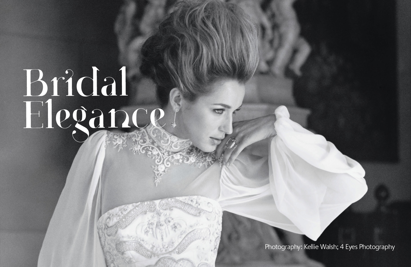 Location: The Mansion at Natirar; Dress: Hayley Paige; Stylist: Alvin Maldonado;  Hair and Make-up: Vassillis Kokkinidis; Necklace: Dior; Photography: Darren Trentacosta