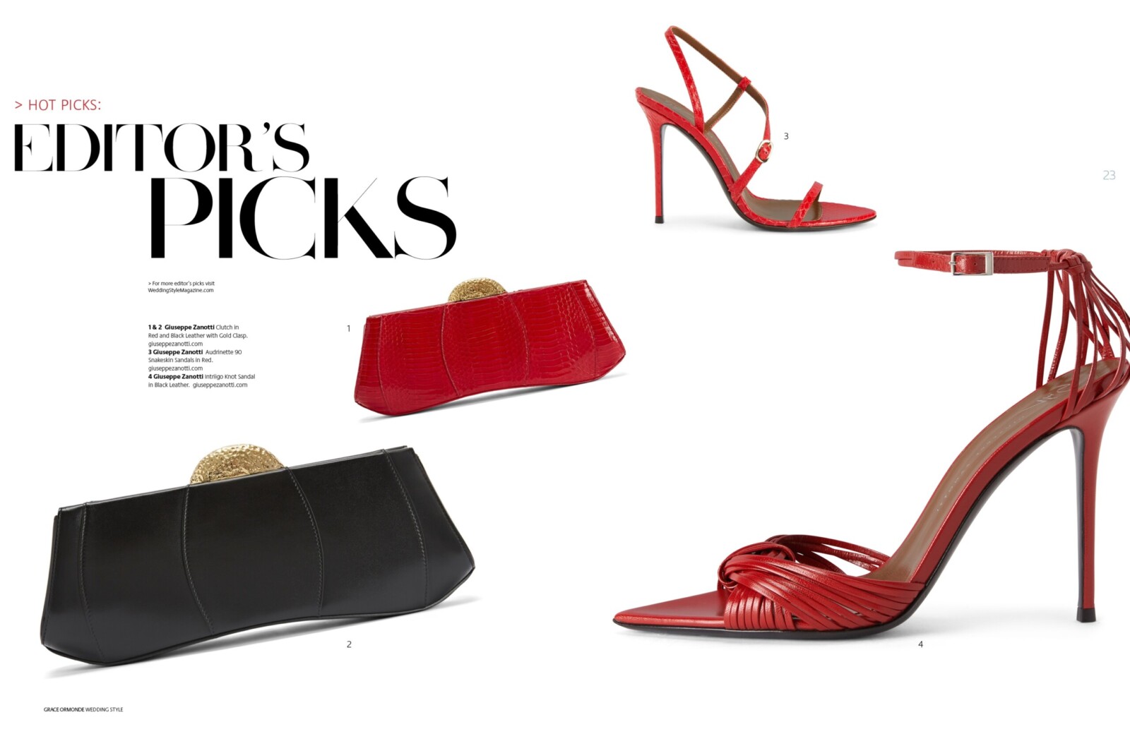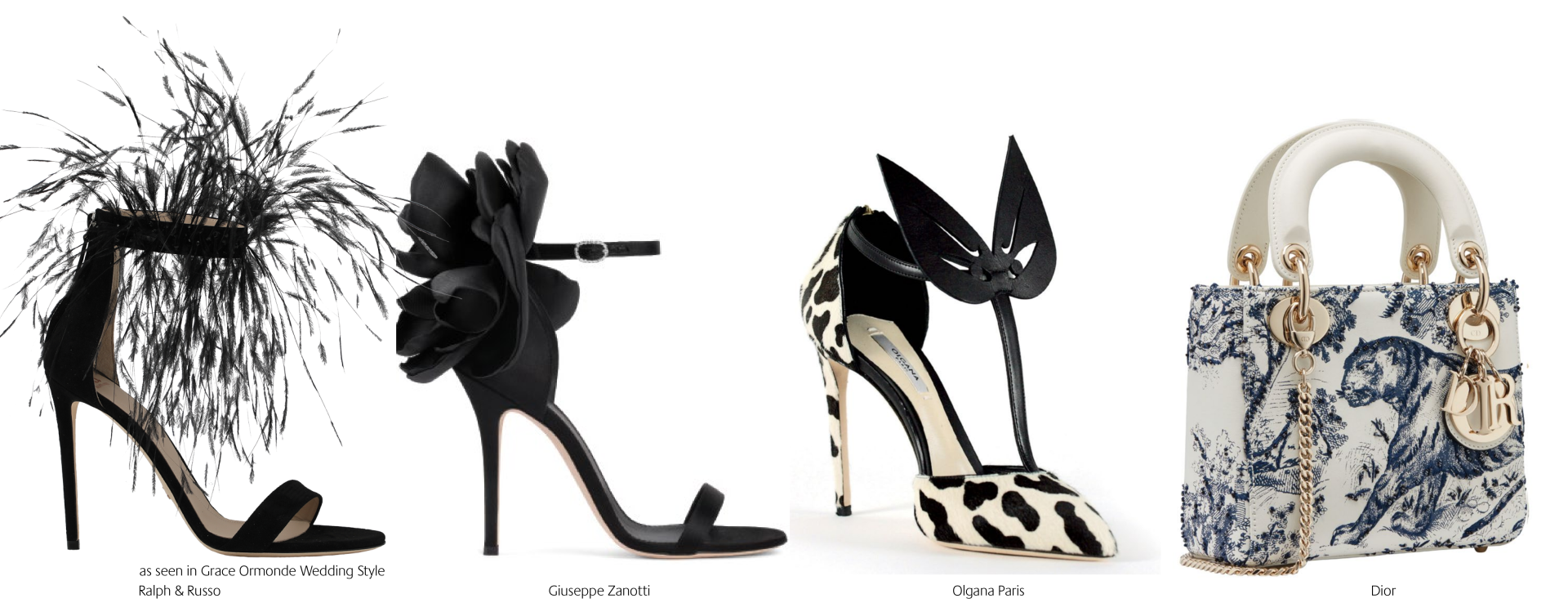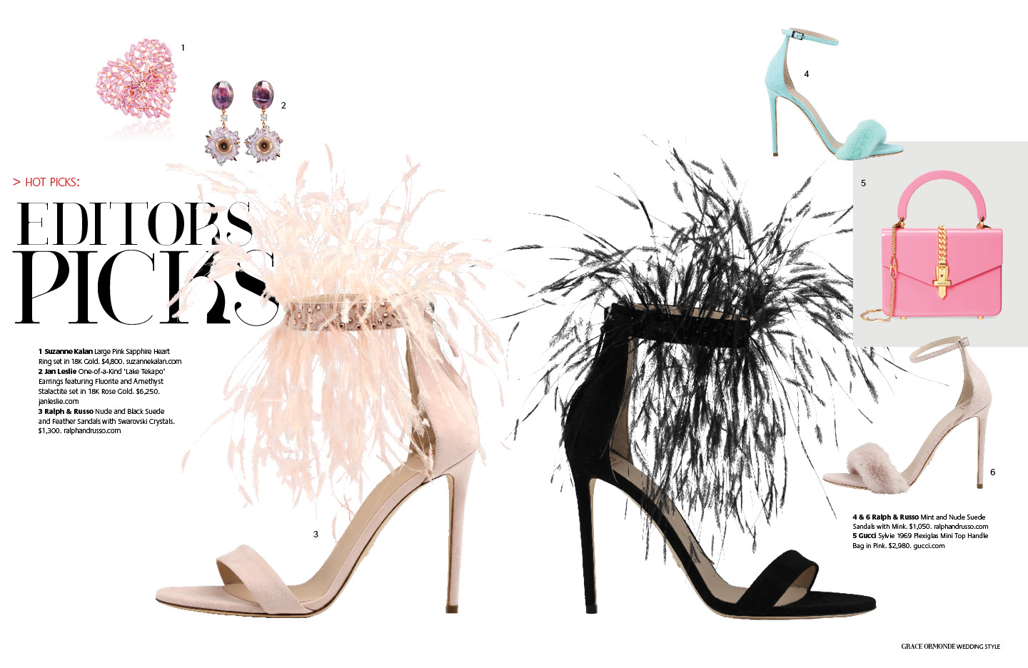 1 Camilla Gabrieli Black Slingback Pump. 2 Camilla Gabrieli Bella Satin Dusty Blue Pump. 3 Femmes Sans Peur Dakota. 4 Tiffany & Co. HardWear Link Earrings. 5 Camilla Gabrieli Vittoria White Patent Leather Blue Crystal Pump. This season’s HOT PICKS are dedicated to the brides who are buying anywhere from three to six pairs of shoes