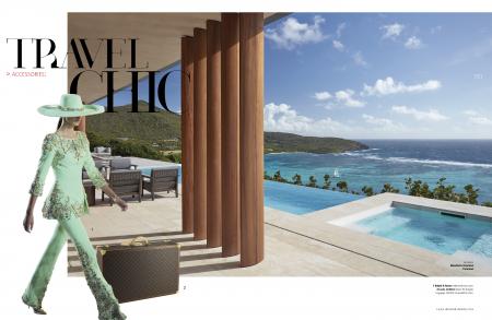 Location: Mandarin Oriental, Canouan; 1. Ralph & Russo; 2. Louis Vuitton Alzer 80 Anglais Luggage. $9,5501. Louis Vuitton Perfume Travel Case; 2. Louis Vuitton 100ml Perfume Travel Case, $460; 3. Louis Vuitton Arizona Dream Sunglasses in Dark Tortoise, $590; 4. Dior Medium Travel Dior Trolley in Blue; 5. Goyard Bourget Trolley, $8,710; 6 Goyard Hatbox, $10,560; Palace Trunk 55, $12,910; Palace Trunk 70,